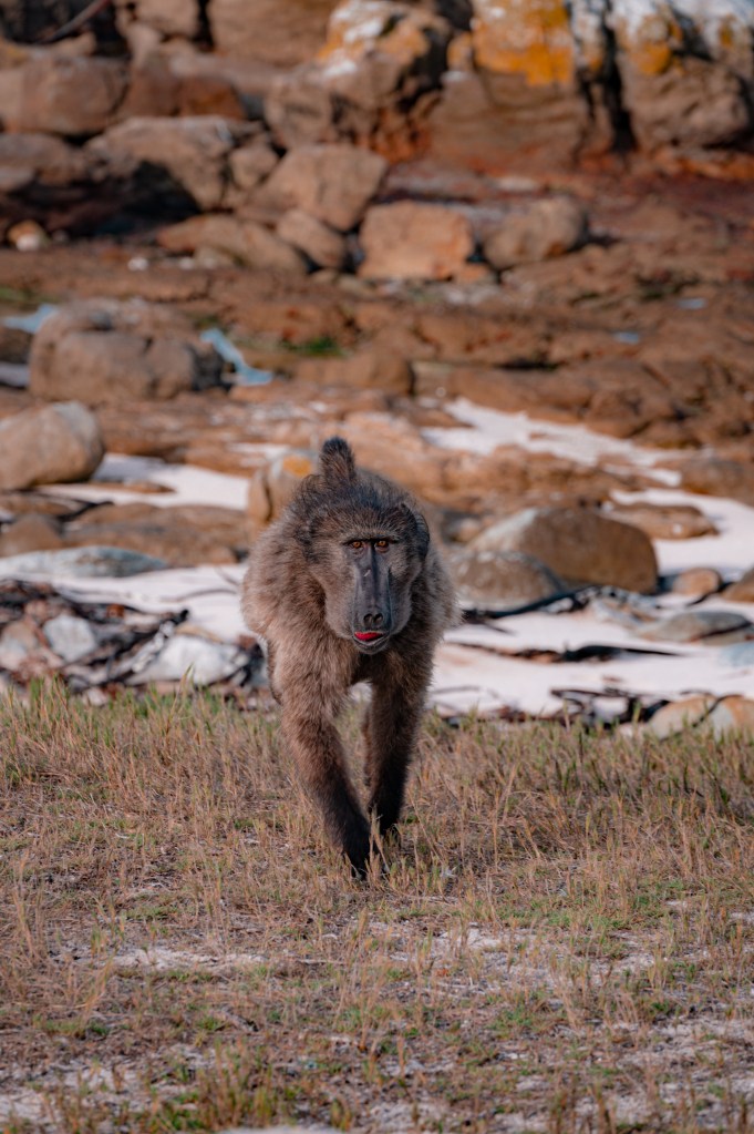 The hike was gorgeous despite low clouds, and we supported park preservation by purchasing a few items. The walk was enjoyable, with plenty of laughs along the way. After the hike, we went snorkeling at Cape Point. We had lunch at a beautiful spot, which I’ll include photos of to show the stunning scenery. We explored a cave where a body was found a few years ago, dating back hundreds of years. It’s fascinating to think about how people lived and foraged in this area long ago. Lunch in such a breathtaking place was amazing, taking in the beauty of the mountains and landscapes. On our walk back, we saw some baboons causing a stir by stealing lunch bags.