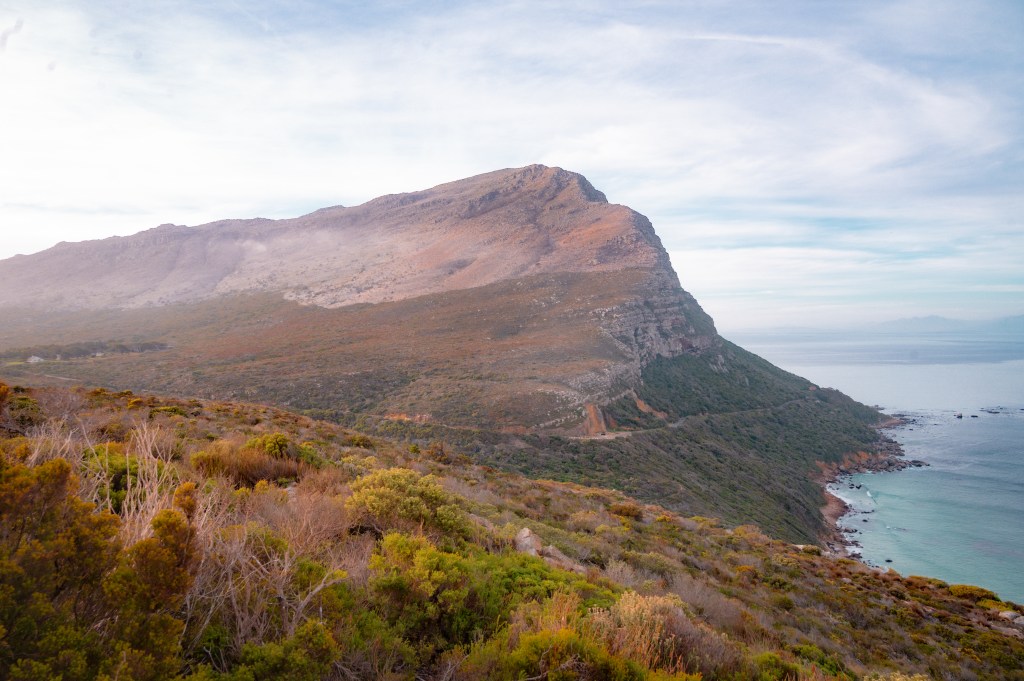 This day was slower, starting with a morning hike up a mountainside. In Cape Town, you can hike a mountain on a whim. Despite my tired legs and bringing a jacket that made things hotter, the hike was rewarding. Low-level clouds made visibility difficult at times. Next, we hiked in Cape Point, a national park at the tip of the Cape Town peninsula. It was interesting to learn that the area’s biodiversity and wildlife are isolated because they can’t move through the developed central part of Cape Town. This isolation contributes to issues like the baboon problem.